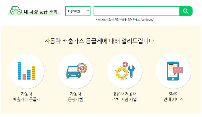 자동차 배출가스 등급조회를 검색하시면 자동차 배출가스 등급제 홈페이지가 나옵니다.