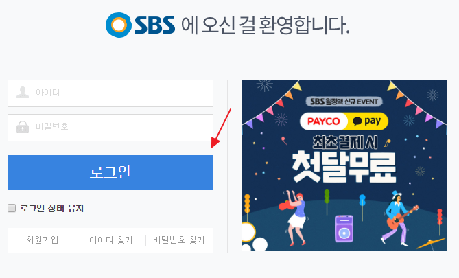 가입을 하신 후에 곧바로 SBS 온에어 방송을 무료로 시청하시면 되는데요.