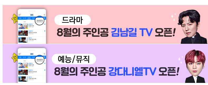 SBS 온에어의 특징 가운데 하나가 24시간 스타TV가 있습니다. 여기서는 매월 선정된 스타에 대한 방송을 24시간 방송하는 채널인데요. 8월의 경우 김남길과 강다니엘이 선정되서 24시간 관련방송을 시청하실 수 있습니다.