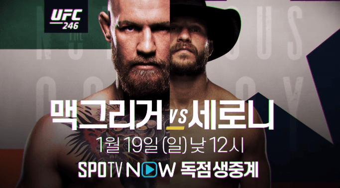 UFC246 메인카드 경기는 1월 19일 낮 12시부터 진행됩니다. SPOTV ON 과 SPOTV NOW에서 독점 생중계합니다.