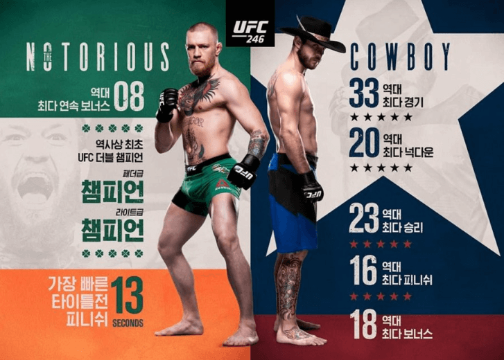 UFC 246 메인카드 경기는 한국시간으로 1월 19일 낮 12시부터 진행될 예정입니다.