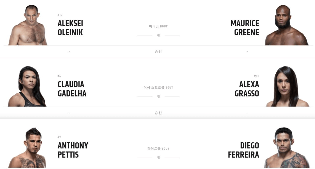 언더카드 대진표는 아래와 같습니다.