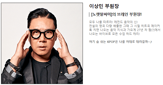 해당 프로그램은 매회 인기 가수들이 일일 강사로 직접 출연하고 케이팝을 좋아하는 10명의 외국인 수강생들을 위해 자신의 노래 강의를 펼칩니다.