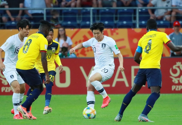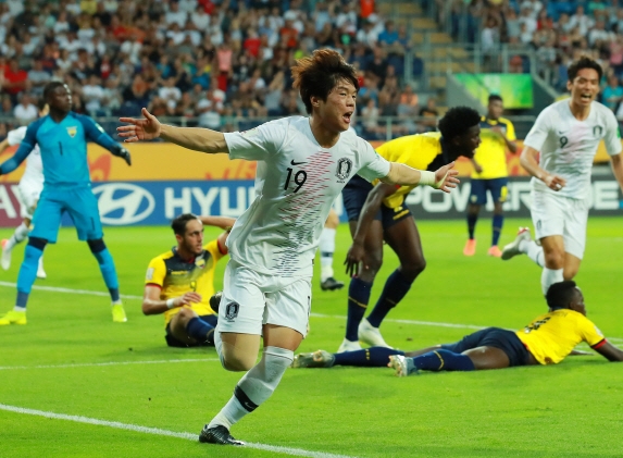 정정용 감독이 이끄는 한국 20세 이하 대표팀이 폴란드 루블린에 있는 아레나 루블린에서 열린 에콰도르와의 4강전에서 1대0으로 승리를 했습니다. 최준 선수가 골을 넣었는데요. 이강인 선수가 어시스트를 했습니다.