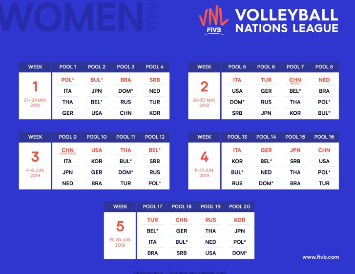 현재 4주차 경기가 진행 중이며 터키, 세르비아, 네덜란드, 태국, 중국, 미국, 브라질, 독일에게 패하며 1승8패로 러시아와 최하위권을 형성하고 있습니다.