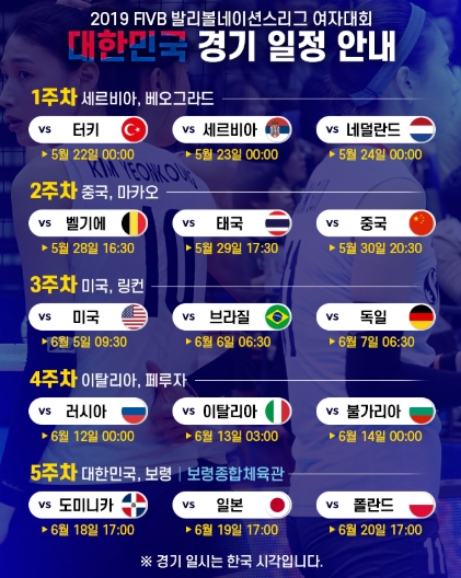 4주차 경기는 이탈리아의 페루자에서 열리고 있으며 5주차는 우리나라 홈 경기로 치룹니다. 보령종합체육관에서 열릴 예정입니다.
